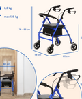Medidas Óptimas: Con un ancho exterior de 60 cm y un ancho interior de 44 cm, un asiento a 51 cm del suelo, este andador ofrece un amplio espacio y comodidad.