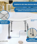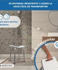 FACILIDADES PARA SU DÍA A DÍA: gracias a este taburete de baño, podrá disfrutar de sus duchas o baños sin esfuerzos y con total seguridad y comodidad.