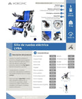 - BATERÍA Y AUTONOMÍA: la silla de ruedas Lyra cuenta con dos baterías de gel de 12V 20AH (240W) , que le permite una autonomía de 20 km.