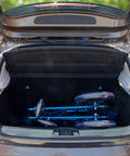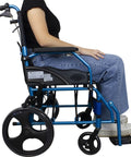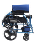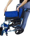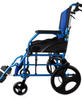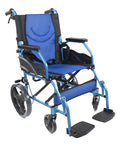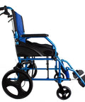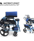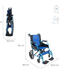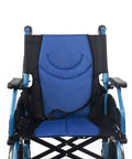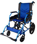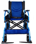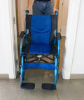 Silla de ruedas plegable de aluminio y frenos en manetas color azul